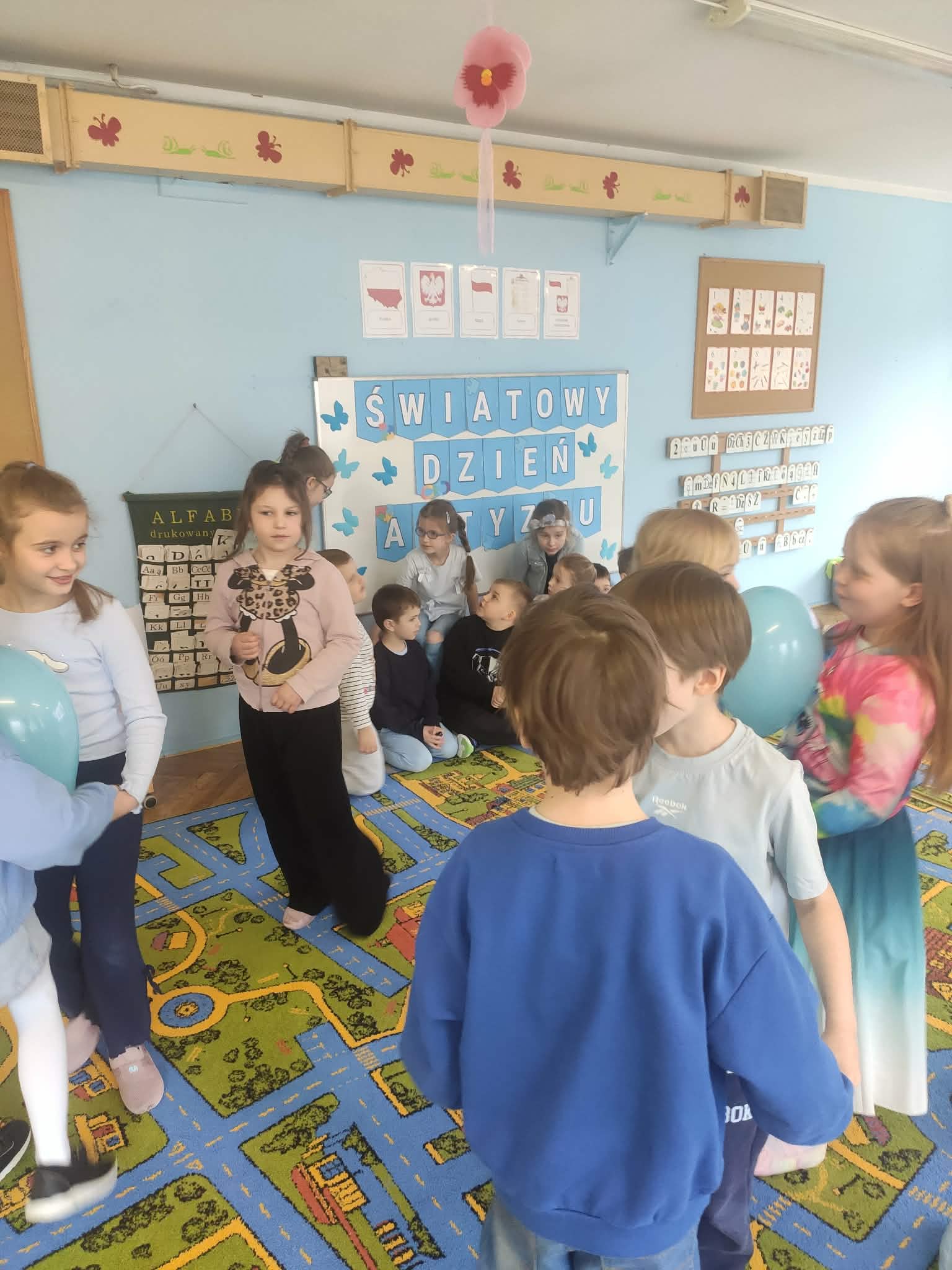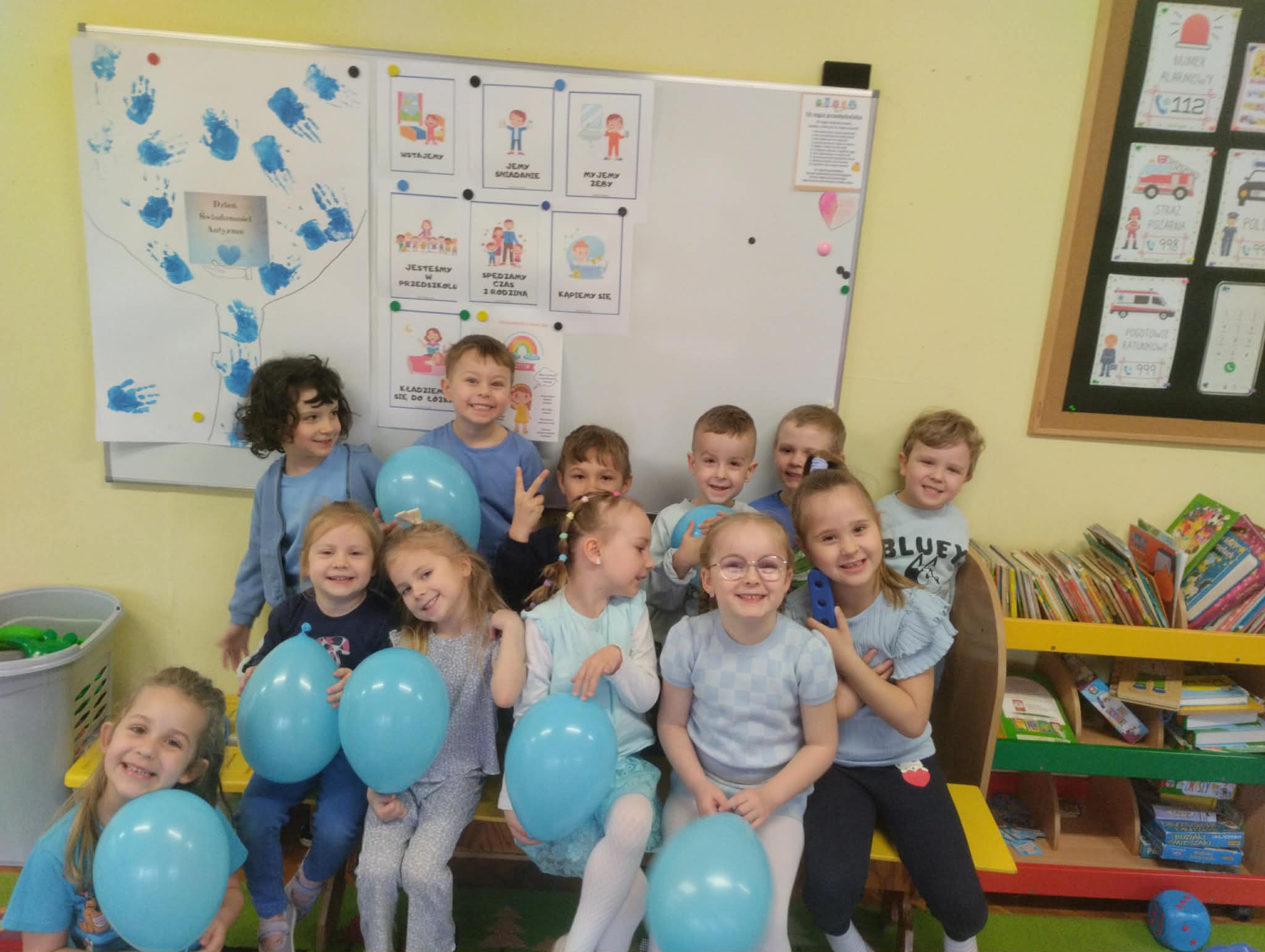 Dnia 9 kwietnia w naszym przeszkolu świętowaliśmy Dzień Świadomości Autyzmu. Takie wydarzenia, to wyjątkowa okazja do kształtowania empatii i zrozumienia już od najmłodszych lat. Tego dnia dzieci ubrały się na niebiesko. Niebieski jest symbolem solidarności z osobami w spektrum autyzmu. W przedszkolu odbyły są różnorodne zajęcia, takie jak wspólne oglądanie krótkich bajek edukacyjnych, rozmowy o emocjach czy zabawy uczące akceptacji i różnorodności. Nauczycielki w prosty i przystępny sposób wyjaśniły, że każdy człowiek jest inny i to właśnie czyni nas wyjątkowymi. Dzięki takim inicjatywom dzieci uczą się szacunku, tolerancji oraz otwartości na potrzeby innych. Na zdjęciach widoczne są dzieci ze wszystkich grup podczas zajeć.