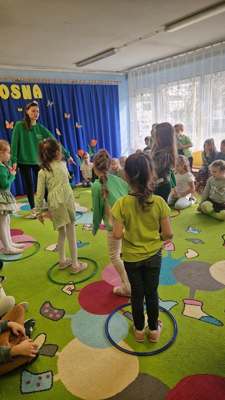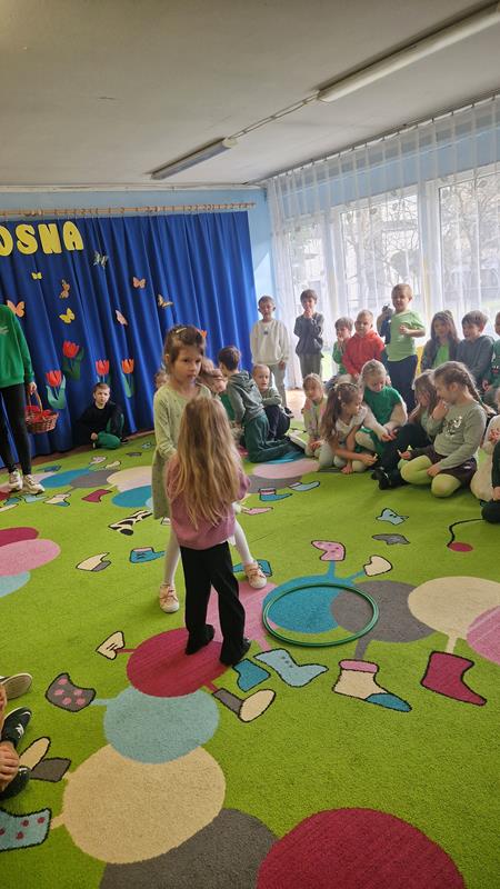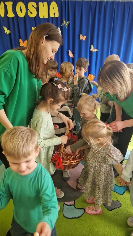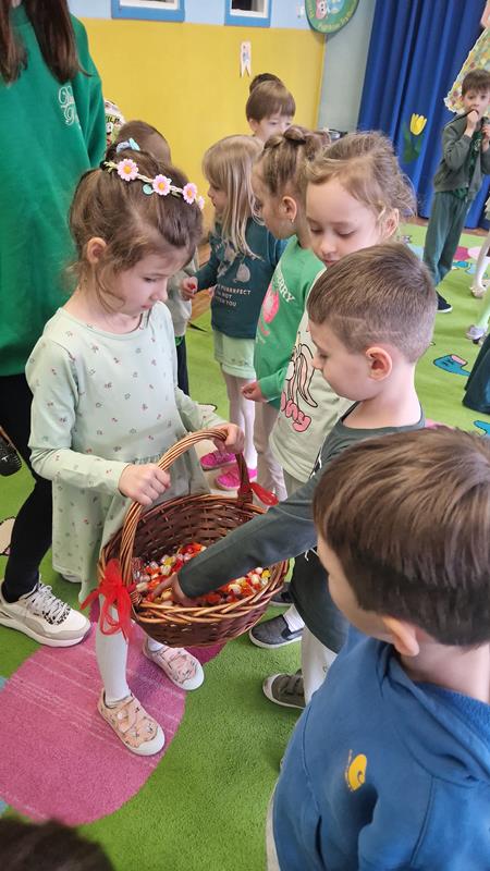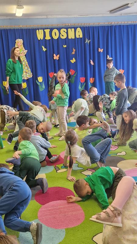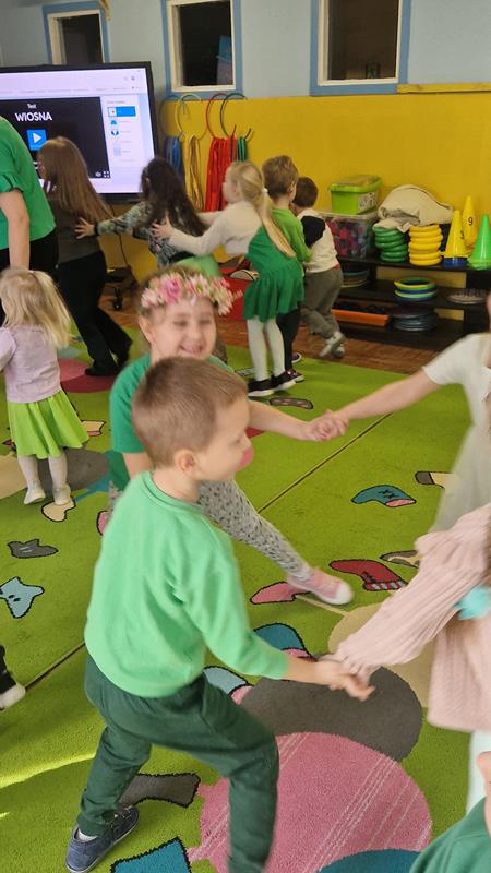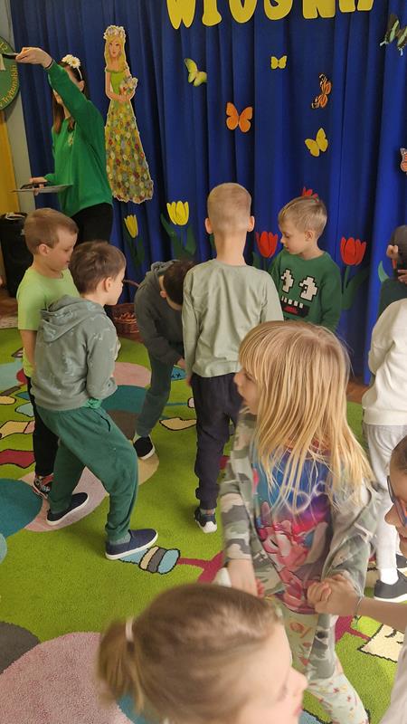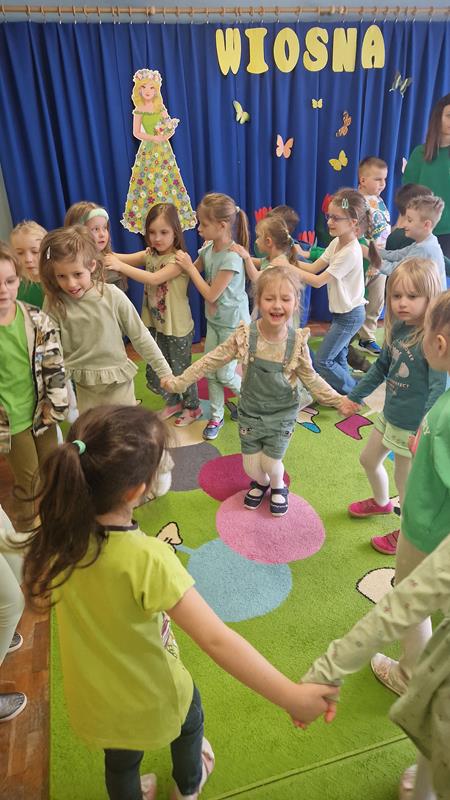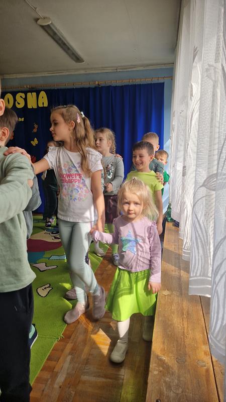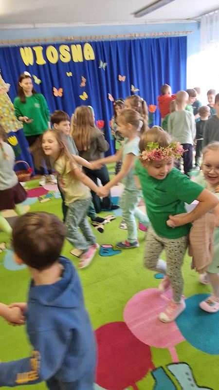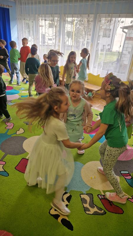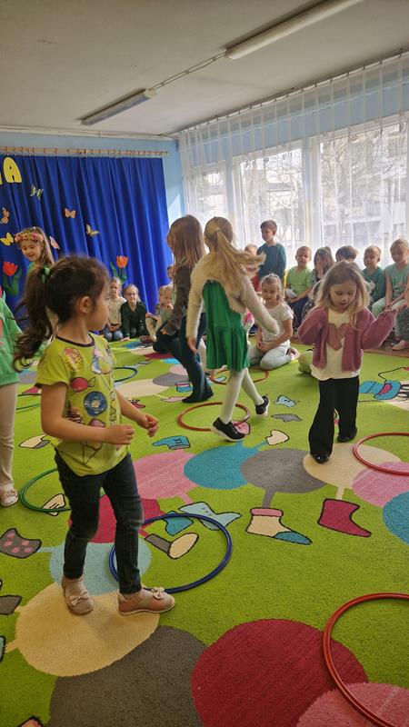 W dniu dzisiejszym (25.03) w przedszkolu odbył się dzień wiosny. Przedszkolaki poznały tradycję związaną z Marzanną. Poczas spotkania dzieci miały okazję zaśpiewać piosenki o wiośnie, brać udział w konkursach i zabawach tanecznych. Dodatkowo rozwiązywały zagadki i quiz wiedzy o tematyce wiosennej. Było kolorowo i bardzo wiosennie. Wszyscy uczestnicy w kolorowych humorach stworzyli pociągi i otrzymali słodki poczestunek. Na zakończenie stwierdziliśmy zgodnie, że wiosna już przybyła i mamy nadzieję że zagości u nas na dobre. Na zdjęciach widoczne są dzieci podczas dnia wiosny.